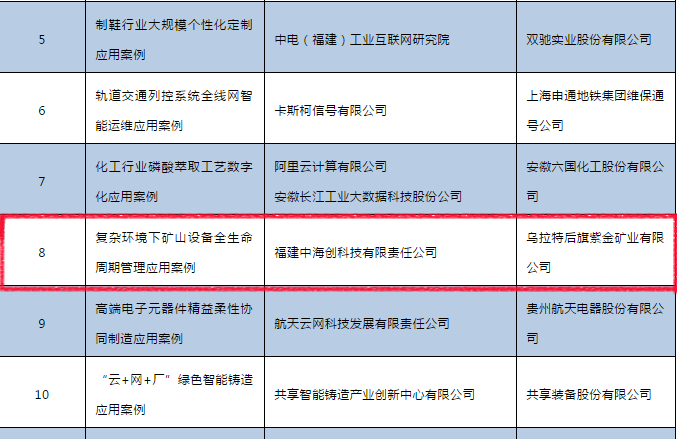 福建爱体育电竞网址《复杂环境下矿山设备全生命周期管理》项目成功入选工信部2019年工业互联网平台创新应用案例。