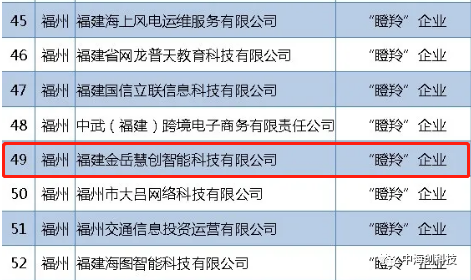 5月25日,福建省数字办正式公布2020年度全省数字经济领域创新企业名单,该名单按企业规模与发展特点,包括3家“独角兽”企业、14家未来“独角兽”企业、72家“瞪羚”企业,涵盖软件与信息技术服务业、电子信息制造业、新一代信息技术产业、制造业融合业态、农业融合业态、服务业融合业态等。
