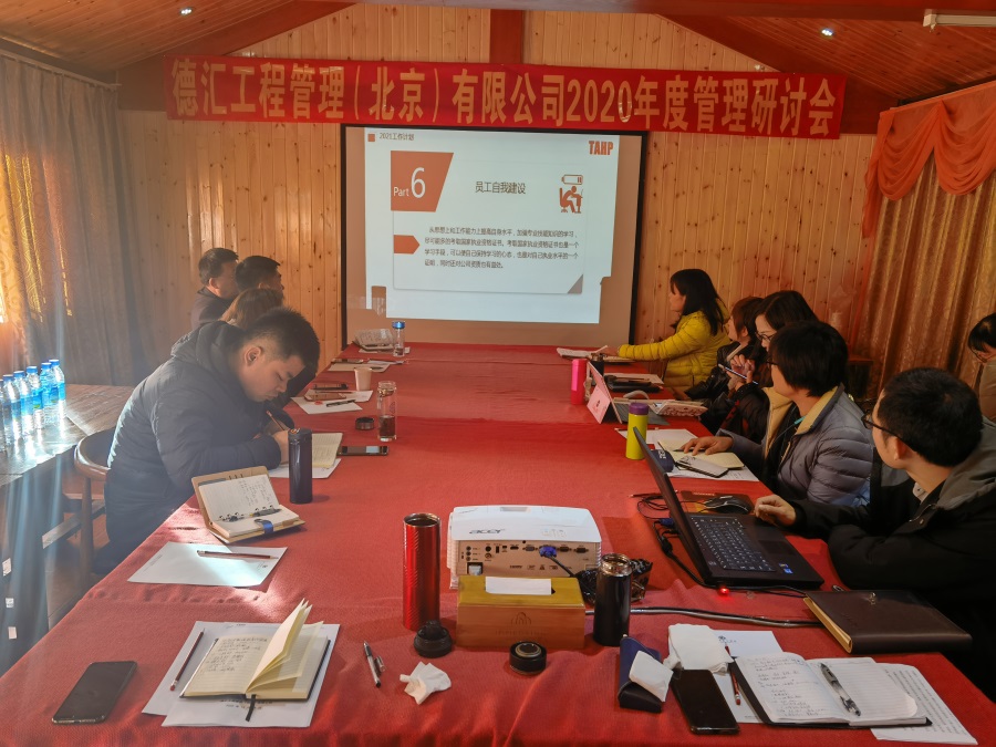 2020年1231日,德汇工程管理(北京)有限公司在云南丽江召开了2020年年终管理研讨会。会议由副总经理何玉双主持,公司管理层共计18人参加本次会议。