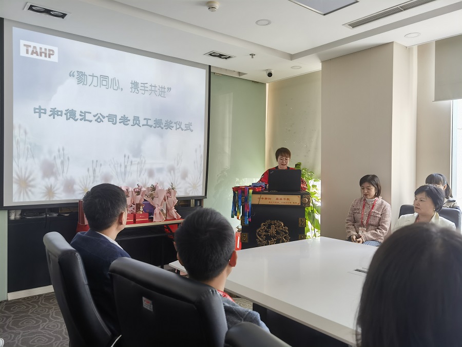 今天我们聚集在这里举行的是“勠力同心,携手共进”中和德汇老员工的授奖仪式。我们这次仪式简单但是庄重且意义重大。也是公司第一次为十年以上老员工进行嘉奖。这次仪式也是一个开始,未来企划部将更加注重企业文化氛围,举办更多的活动来让我们的员工更加深刻的体会中和德汇文化。