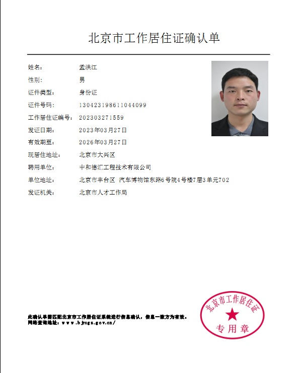 热烈祝贺我公司又有2名人员获得北京市工作居住证!