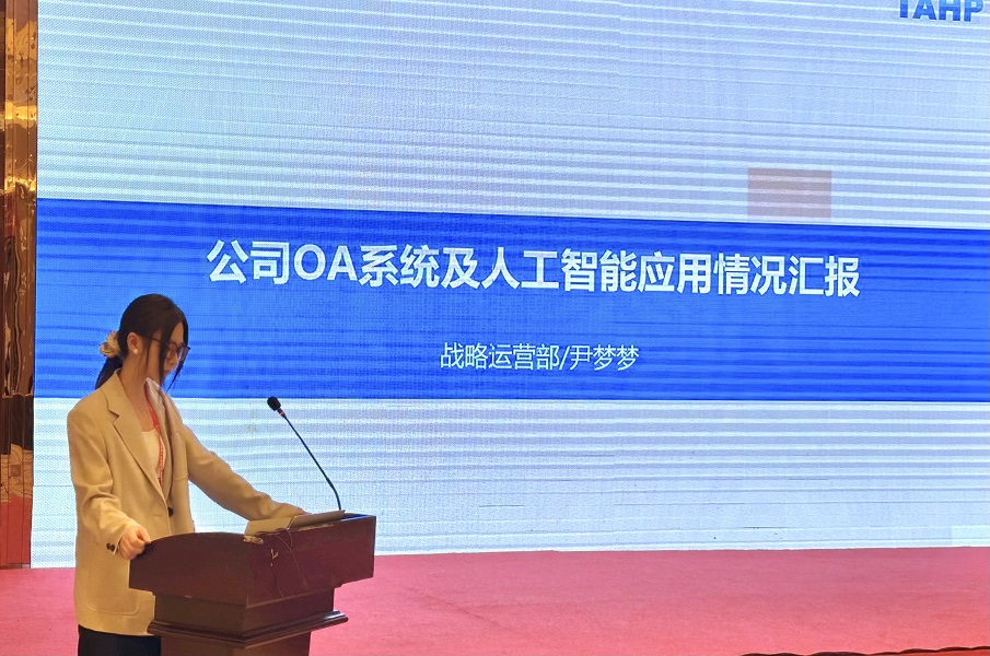 战略运营部副经理尹梦梦根据公司OA系统与人工智能技术情况展开汇报,并就目前公司现行AI技术已实现的应用情况进行分享。