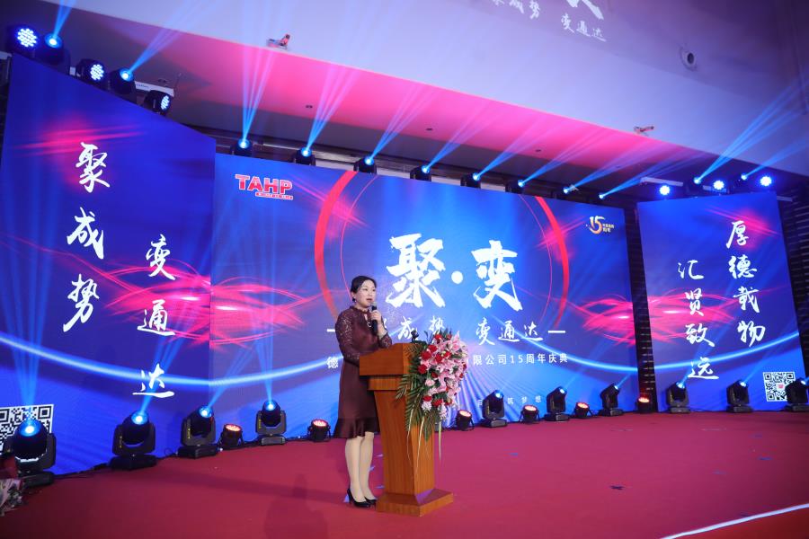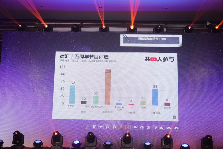 此次庆典活动参加人员除了全体员工之外,还有协会领导、集团领导、业主朋友,合作单位、分公司和运营中心负责人,大家共同分享了德汇十五周年的喜悦与精彩。庆典启动之前播放了暖场视频和开场视频,十五年的拼搏、十五年的发展都浓缩在其中,一张张熟悉或陌生的面孔,一次次新的突破,让我们重新回顾了十五年来德汇一步步走来的历程。庆典启动时,会场变暗,德汇化成一只激光雄鹰围绕全场翱翔一圈,最后定格到主屏上……。启动仪式结束后,詹芙蓉董事长发表了热情洋溢的讲话,此情此景,让每个德汇人都心潮澎湃。