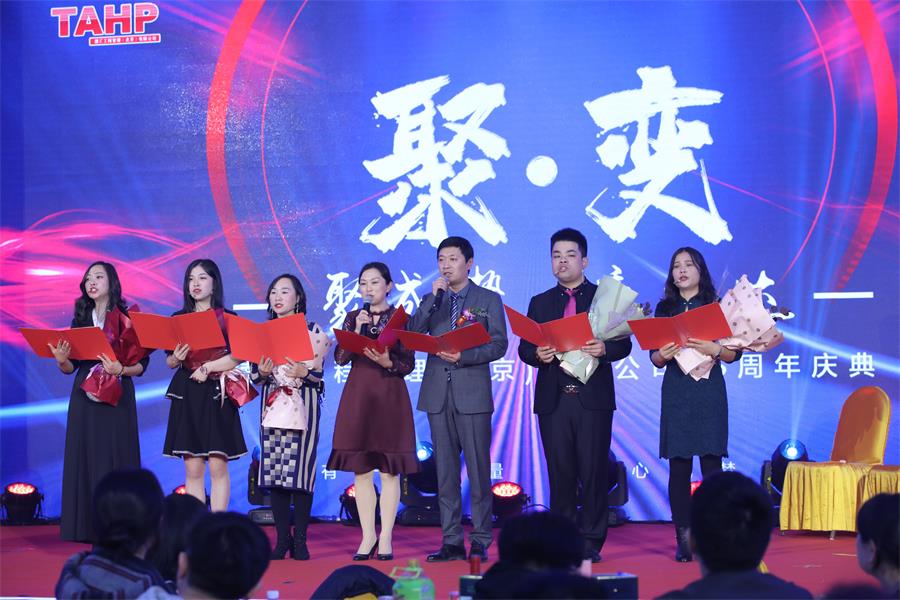 第三部分:晚宴。詹芙蓉董事长致祝酒词,大家在一片欢声笑语中共饮杯中酒,酒喝干,再斟满,这是一路走来的情谊,期间我们还穿插了微信抽奖环节,共抽取三等奖10人,二等奖6人,一等奖2人,特等奖1人。伴着祝福,伴着笑语和歌曲,周年庆典的欢乐时光也随即圆满落幕!