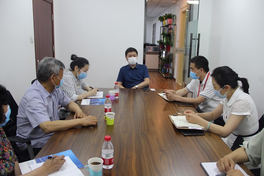 德汇公司党支部书记詹芙蓉、支部委员段少佐、单宏兰带领协会领导参观了公司的办公环境,而后在会议室进行了交流,公司总经理王维东、副总经理何玉双也一同参加。