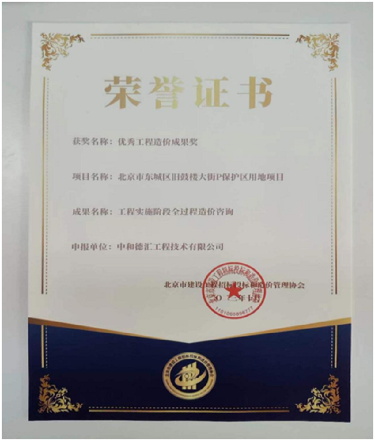 公司造价事业一部承担的“北京市东城区旧鼓楼大街P保护区用地全过程造价咨询项目”,继2023年10月获得优秀工程造价成果奖后,又在近百个获奖工程中脱颖而出,成为成功入选《优秀工程造价成果案例集(2023年版)》的18个案例之一。