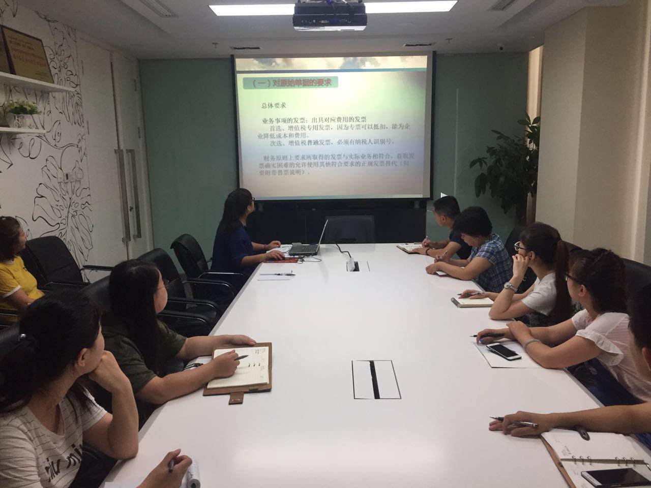 自7月1日,国家税务总局关于发票的新规出台以后,公司财务部按照新规的精神对内部费用报销进行了规范,新规实施两个月以来,财务部们针对各部门在费用报销中存在的问题进行梳理,对开票过程中存在的疑问进行汇总整理,形成规范的培训文档,并对各部门相关人员进行了系统的培训。参会人员认真学习,针对有疑惑的地方及时提问,培训人员对各种问题认真解答。收到良好的培训效果。